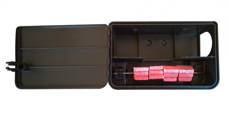 Контрольно-истребительный контейнер для применения (раскладки) родентицидов, оснащен замками, системой крепления приманки, системой крепления к полу, размер 220х140х80 мм