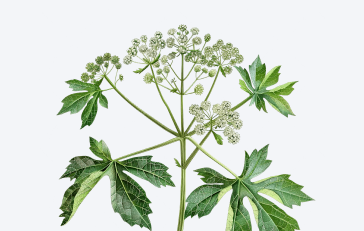 | Этот сорняк обладает достаточно крупными листьями с рассеченными зубчатыми краями и высоким толстым стеблем с характерными фиолетовыми пятнами. Высота растения может достигать двух метров. Цветки борщевика напоминают по форме зонтики и окрашены в белый или зеленоватый цвет. |